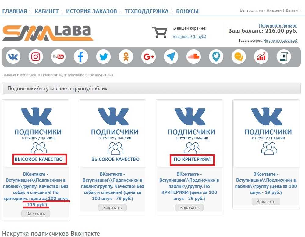 И все-таки, чем можно здесь похвастаться и что здесь можно интересного сделать? Это сервис предназначен для работы со всеми популярными соц. сетями от ВК до Telegram? То есть здесь можно заказать накрутку всевозможных функций социальных сетей (комментарии, лайки, подписчиков и просмотры). Нас на данный момент интересует накрутка подписчиков в ВК. Есть 4-е основных вида накрутки в сервисе СММЛАБА, для упрощения разделим его на два вида: это качественная накрутка, и не качественная накрутка.