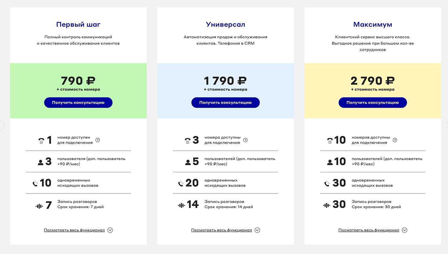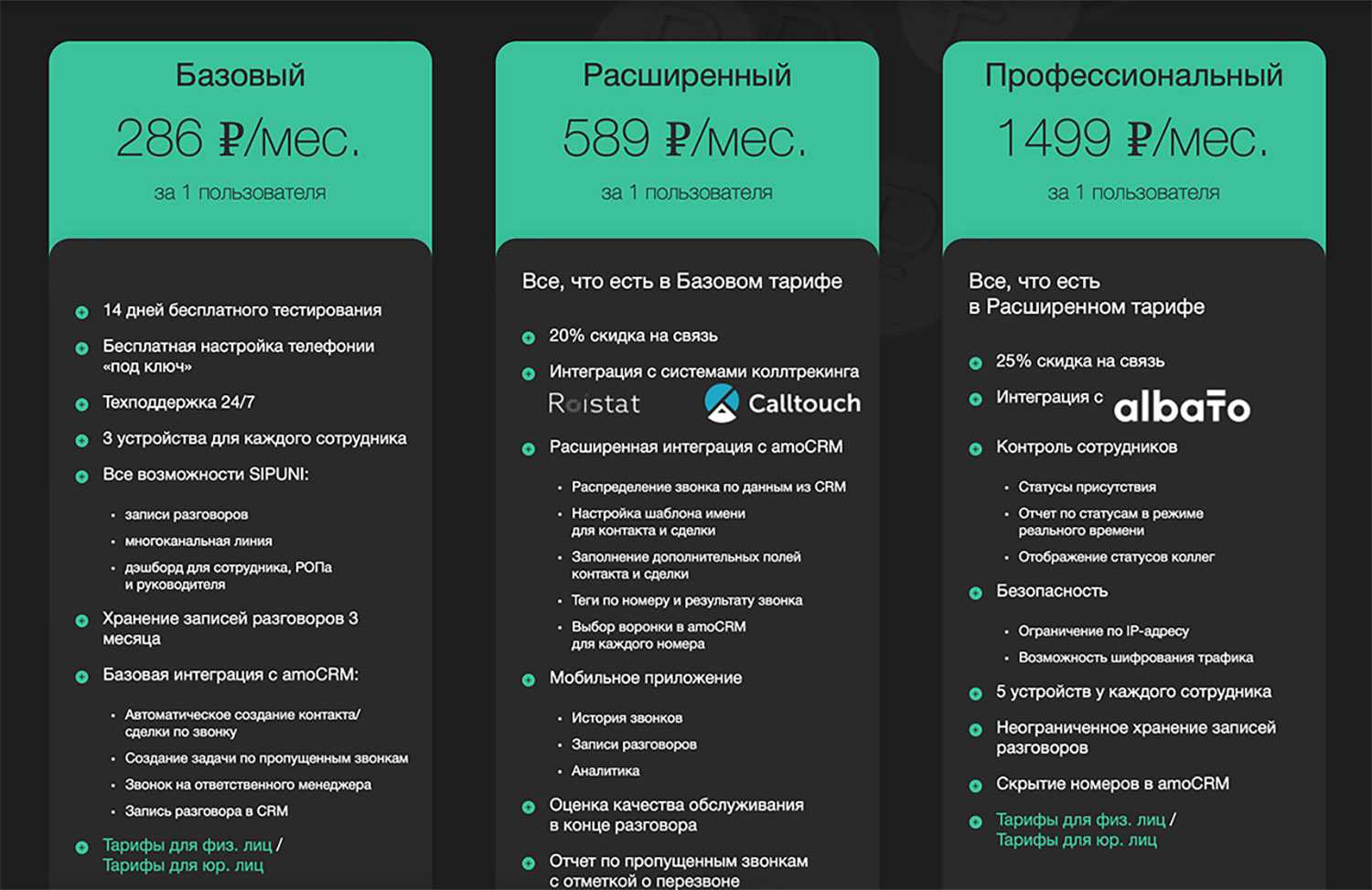 Как и большинство других компаний, услуги ориентированы на бизнес-клиентов. Есть возможность интеграции телефонии с CRM-системами и гибкие настройки многоканальных линий.