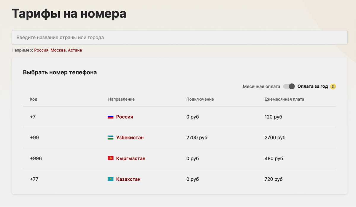 ◉ Можно приобрести любой необходимый номер. Это может быть телефонный номер нужного региона, федеральный или мобильный. Кроме этого доступны телефонные номера других стран с небольшой абонплатой для выгодных зарубежных звонков.
