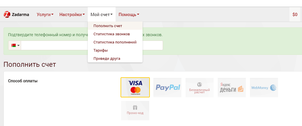 Zadarma использует гибкую модель ценообразования, позволяющую пользователям платить за те услуги, которые они используют.