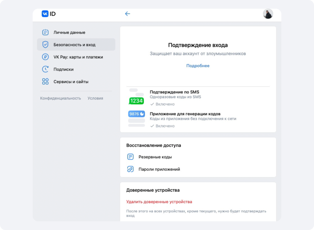 А если учитывать, что сервис собирает основные персональные данные – важно включить дополнительную защиту аккаунта. Можно настроить вход по SMS, задать контрольный вопрос и даже подключить биометрию