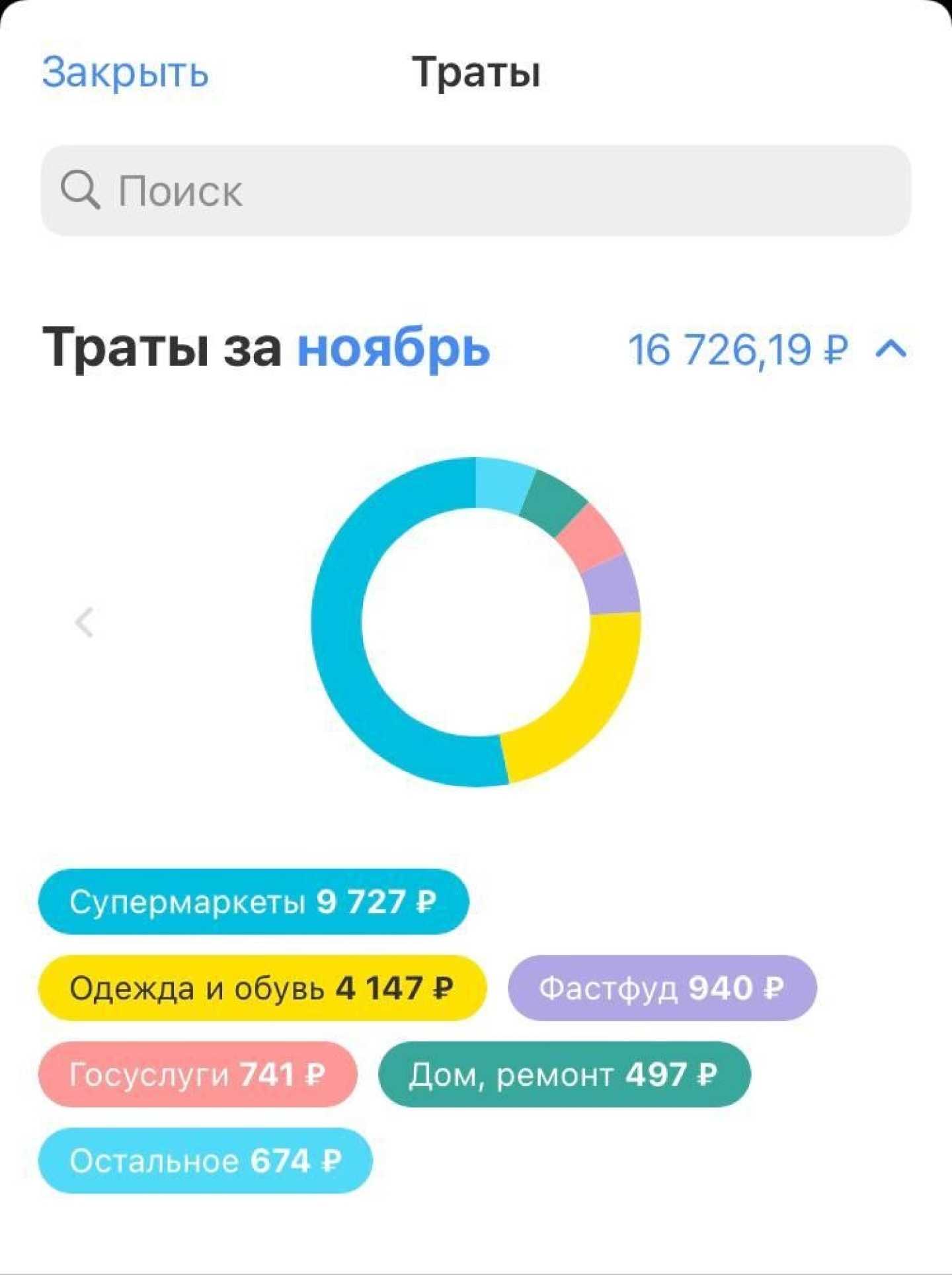 Пример ежемесячных расходов по категориям