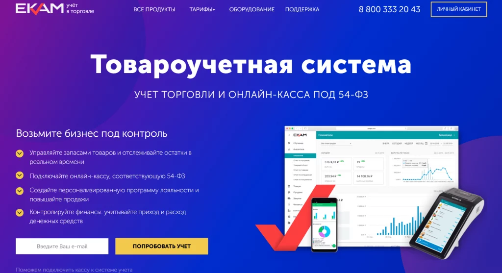 Система EKAM создана для управления торговлей, включая продажи оффлайн и онлайн. Сервис позволяет проанализировать результаты работы организации данного профиля, также он взаимодействует с ЕГАИС.