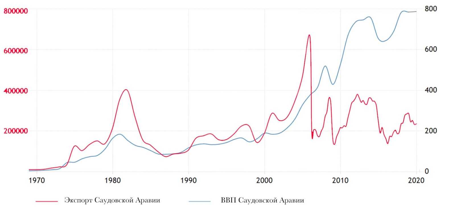 Зависимость ВВП и объемов экспорта в Саудовской Аравии: