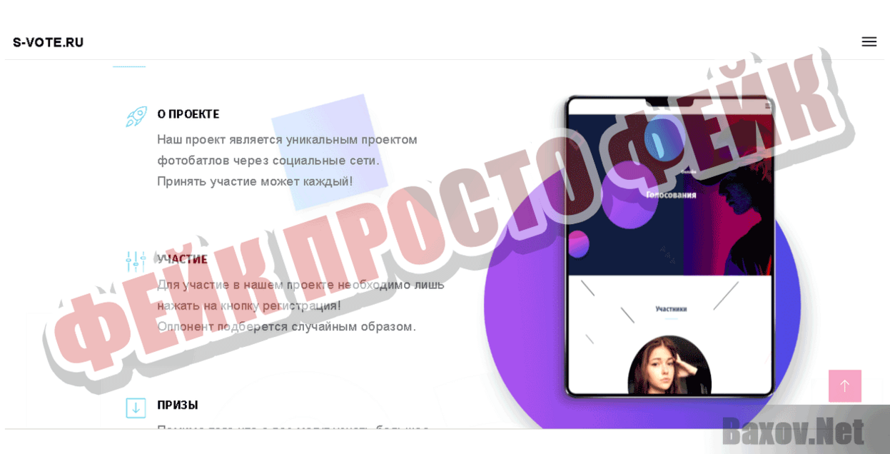 При переходе на основной сайт https://s-vote.ru , нас вообще встречает «фотобатл». Сайт давно заброшен и голосование не функционирует. Видимо нужно было так же авторизовываться через социальные сети.