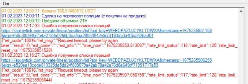 Эта ошибка (Request timeout…) значит, что у вас запаздывает (или опережает) по времени запрос на биржу. Причина этого, либо медленный интернет (надо найти другое место для запуска) или у вас неверно настроено время (для этого проведите синхронизацию).