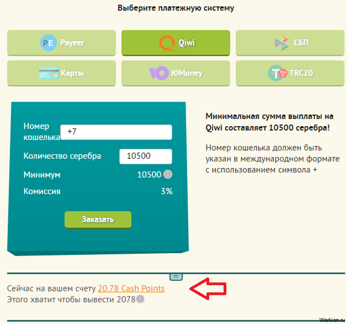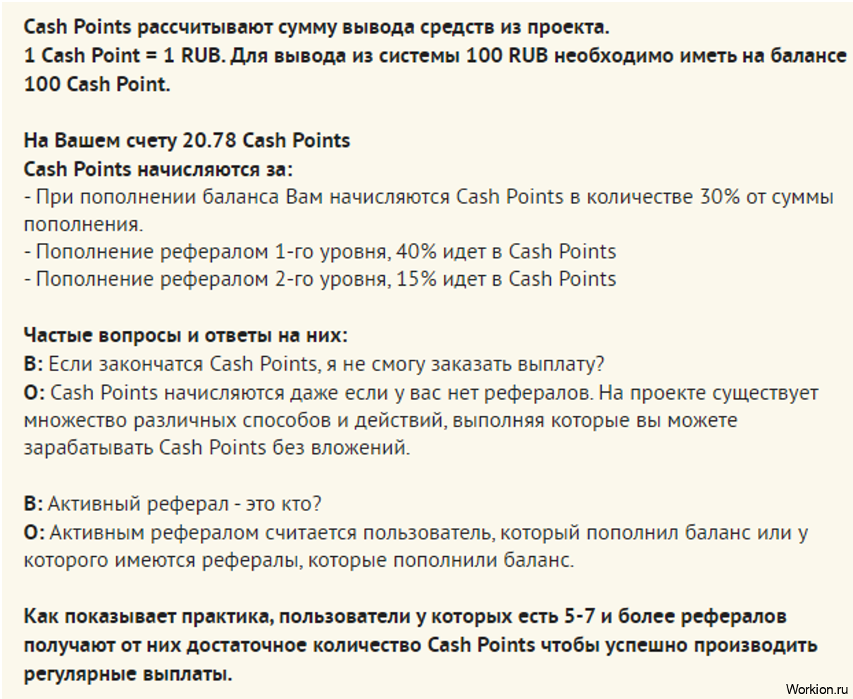 Практически все лучшие фермы с выводом денег вводят ограничения по выплатам. Чтобы заказать вывод, нужно сначала собрать платежные баллы (кэш поинты). Основной способ их получения – привлечение рефералов. Один балл позволяет вывести 1 рубль, т.е. чтобы получить 1 рубль, нужно не только 10 серебра, но ещё и кэш поинт: