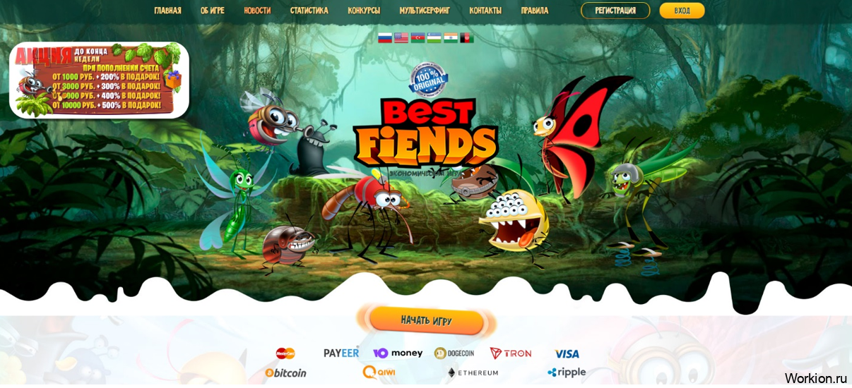 | Бонус за регистрацию | 10 рублей (бесплатная букашка Бриттл) |