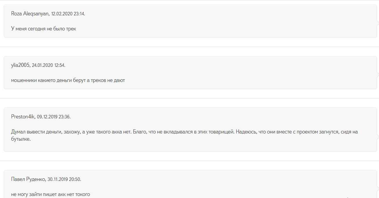 У «АудиоПланеты» много негативных отзывов. Проект вызывает доверие пользователей возможностью получить минимальный заработок. Но участника, как только он убеждается, что деньги выплачивают, и покупает более выгодную категорию, лишают треков для прослушивания.