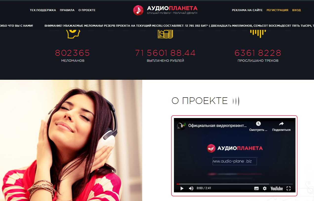 Слушай музыку и зарабатывай деньги на сайте * Аудио планета *.