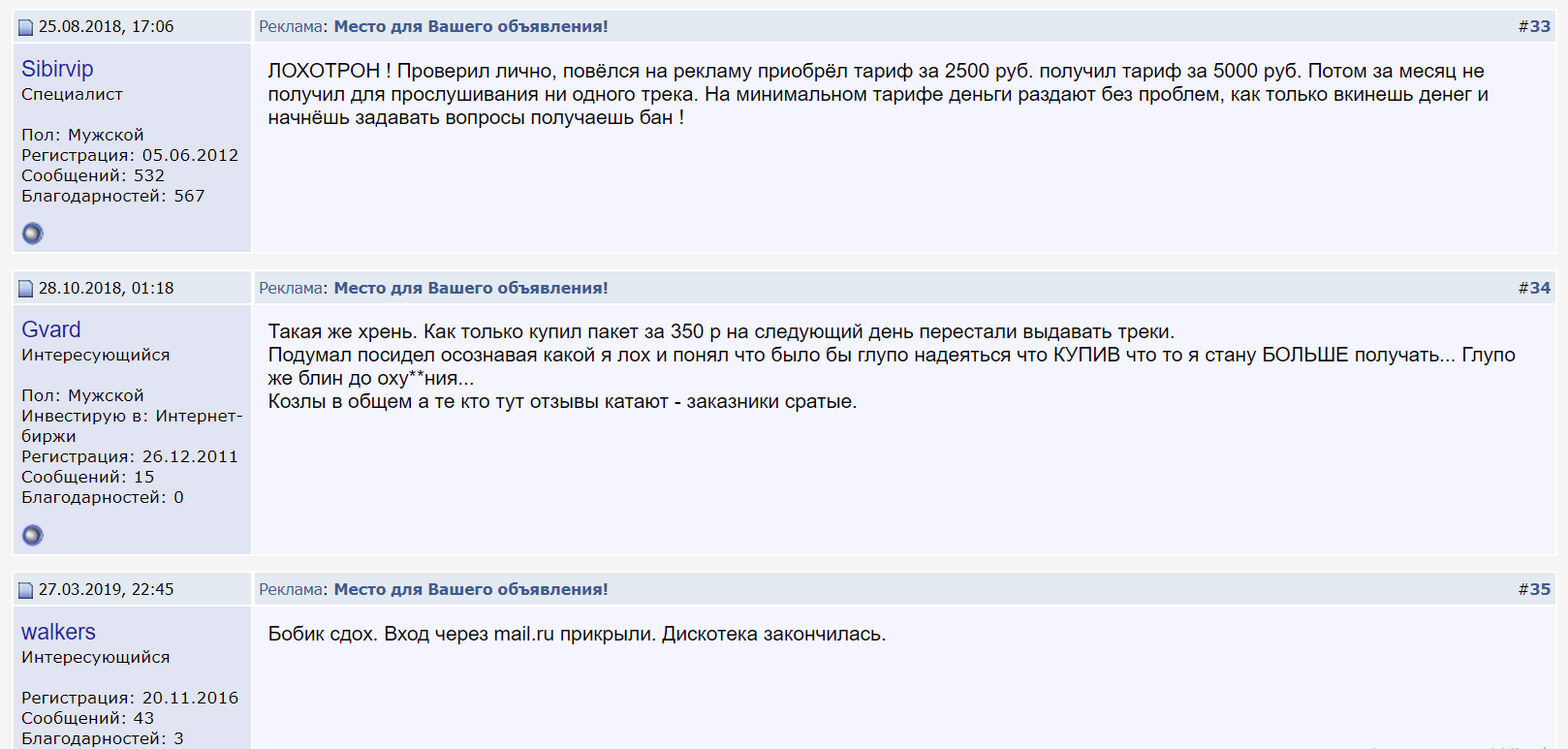 Первое время пользователи исправно получали биты за музыку. Но стоило им купить категорию повыше или другую платную услугу, как количество доступных песен постепенно уменьшалось до нуля. В итоге участнику проекта удавалось вывести из системы только около 50 рублей, потом возможность зарабатывать полностью пропадала. В редких случаях аккаунт пользователя могли заблокировать или удалить.