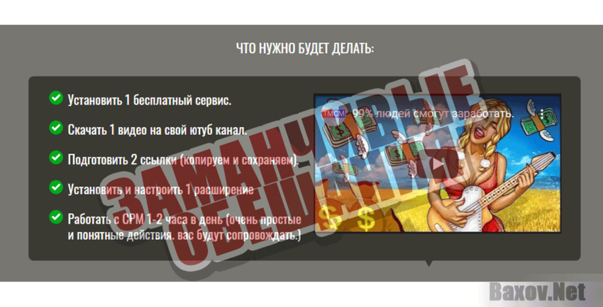 Что делать надо? Вы будете зарабатывать на сервисе по определенной схеме наполняйте площадку готовым контентом (материалы даны в курсе). Подключите специальные оферы с постоянным доходом. Далее запускаете в работу всю систему и начнете получаете постоянный доход долгое время. Шаг за шагом двигаясь к заветной цели заработок до 250 000 в месяц на постоянном автодоходе!