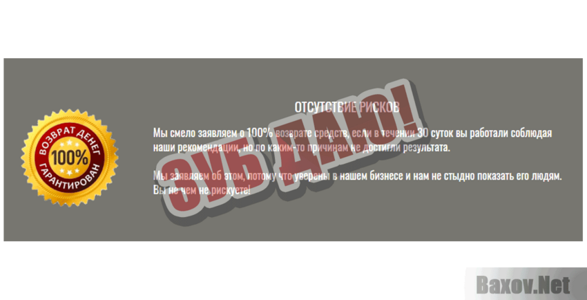 В случае выполнения всех инструкций по тарифу «ПОДДЕРЖКА» и при этом отсутствия хоть какого либо дохода, напишите мне в поддержку и опишите вашу проблему. Если я не смогу вам помочь, то верну Вам деньги за курс.
