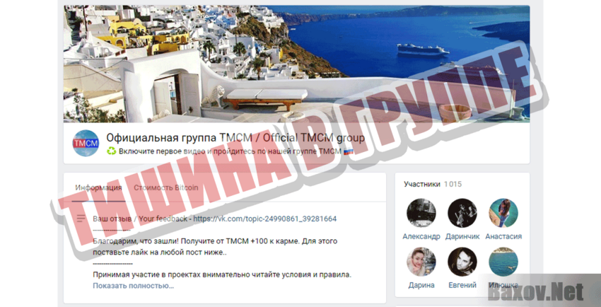 - группу ВКонтакте — vk.com/tmcmvk. Это официальная группа TMCM. В ней больше тысячи участников, 12 постов и тишина. Администратор группы неизвестен. Ничего по теме «Автодохода» в группе нет, есть только сообщения на тему «я за кросс маркетинг».