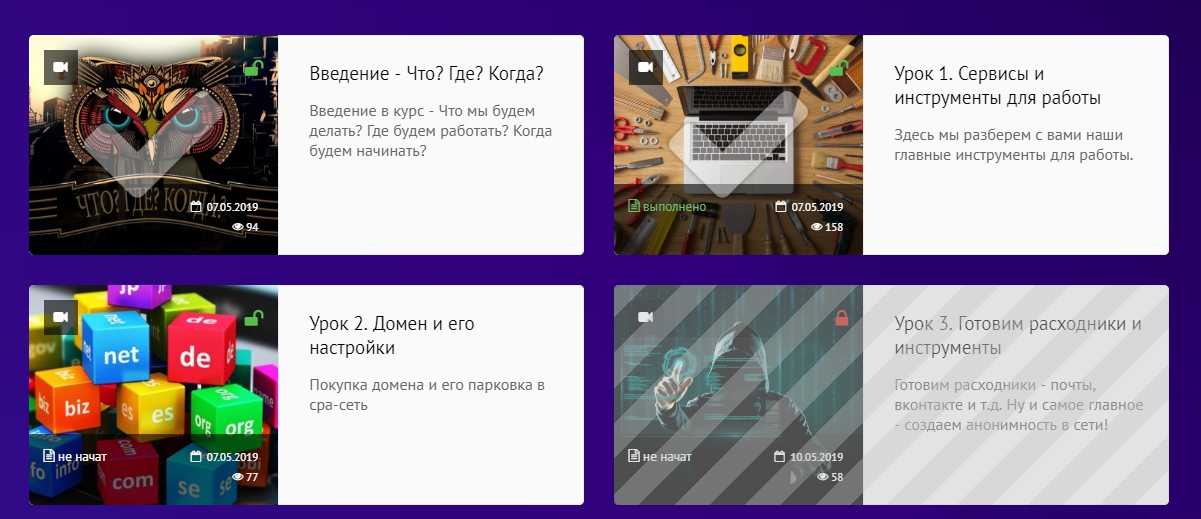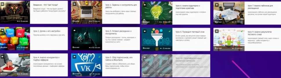 Структура обучения: Пакет Я всё сам курса Арбитраж трафика для новичков состоит из 10 видеоуроков + Введение. Вы поэтапно проходите каждый урок, выполняете домашнее задание и отчитываетесь здесь же, в системе обучения. Далее вам открывают доступ к следующему уроку.