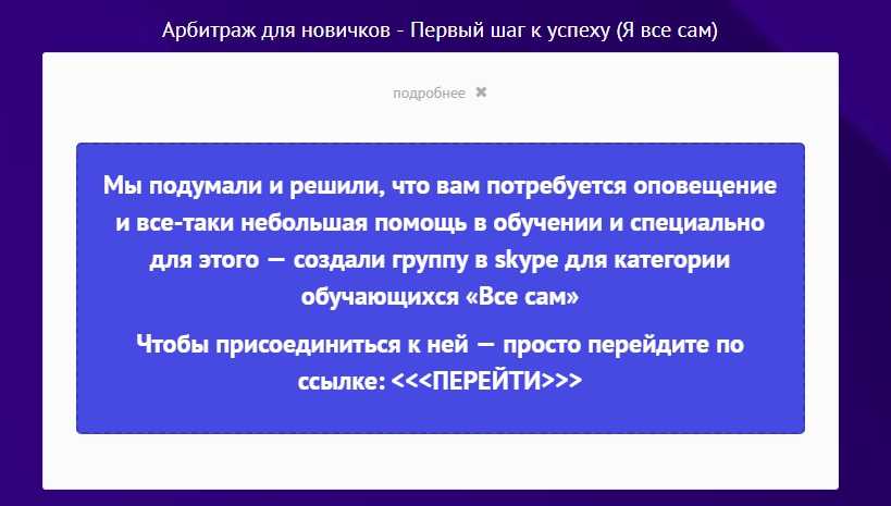 Формат обучения: Арбитраж трафика для новичков (пакет Я всё сам) — это типичный курс, представляющий собой серию видеоуроков с домашним заданием и ссылками на полезные сервисы и дополнительные материалы.