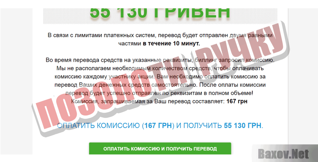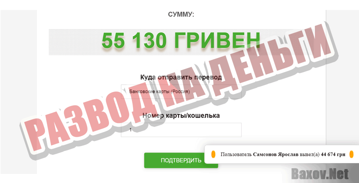 После того, как вы попадаете на сайт, вам сразу сообщают о том, что есть перевод для вас. Но отметим, что перед этим ресурс не требует ввести какие-либо данные или другую информацию, чтобы узнать, кто именно на него зашел, что сразу говорит об обмане.