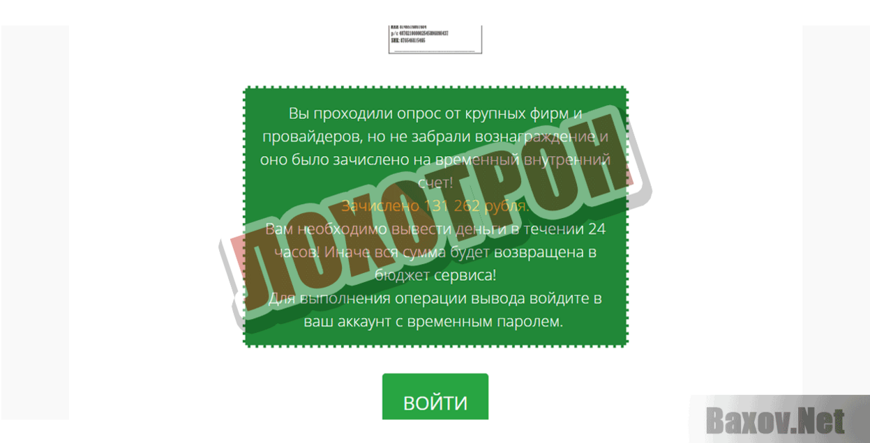 Перевод якобы за прохождение опросов, и проект не интересует, учувствовали ли вы в каких-либо опросах и проходили ли что-либо. Просто сообщают что есть перевод и все. При этом, подтвердить его нужно в течении суток, иначе, он будет аннулирован. Но даже если зайти на сайт через день или два, все равно будет предложено оформление перевода.