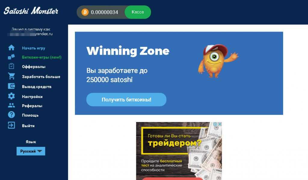 Satoshi Hero и Satoshi Monster — биткоин краны на русском языке от одного издателя Bitplay.io. Пароль для входа и накопительный счёт у них общий, есть реферальная программа, игры. По сути это клоны, вот сравните сами.