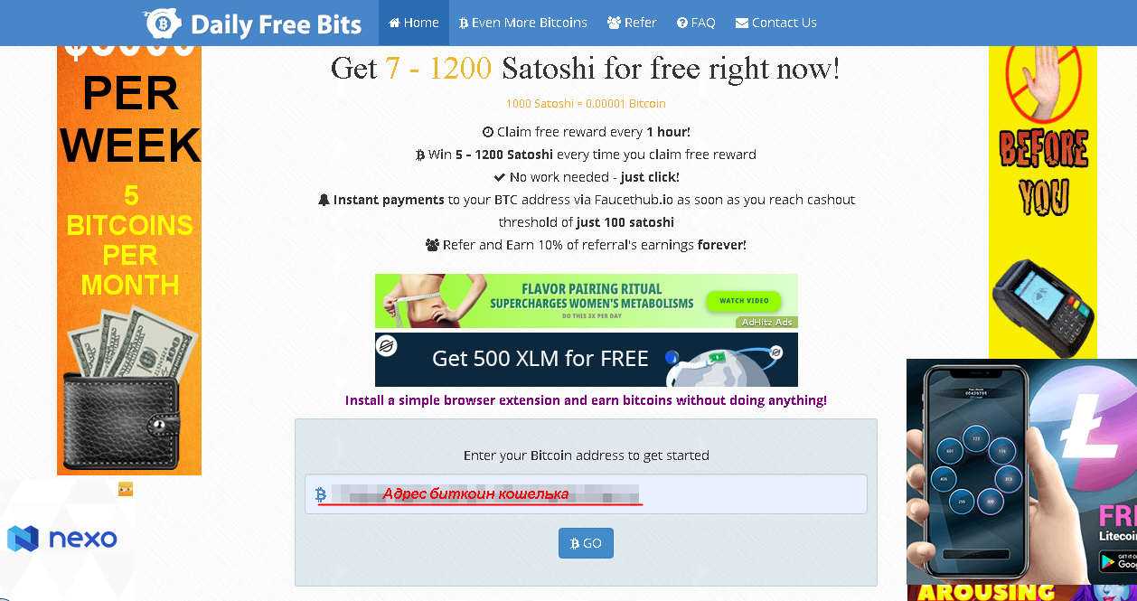 - Daily Free Bits. Каждый час можно получать от 1 до 1200 сатоши. Дополнительные способы заработка отсутствуют. Вывод доступен от 10 сатоши на кошелек FaucetPay.