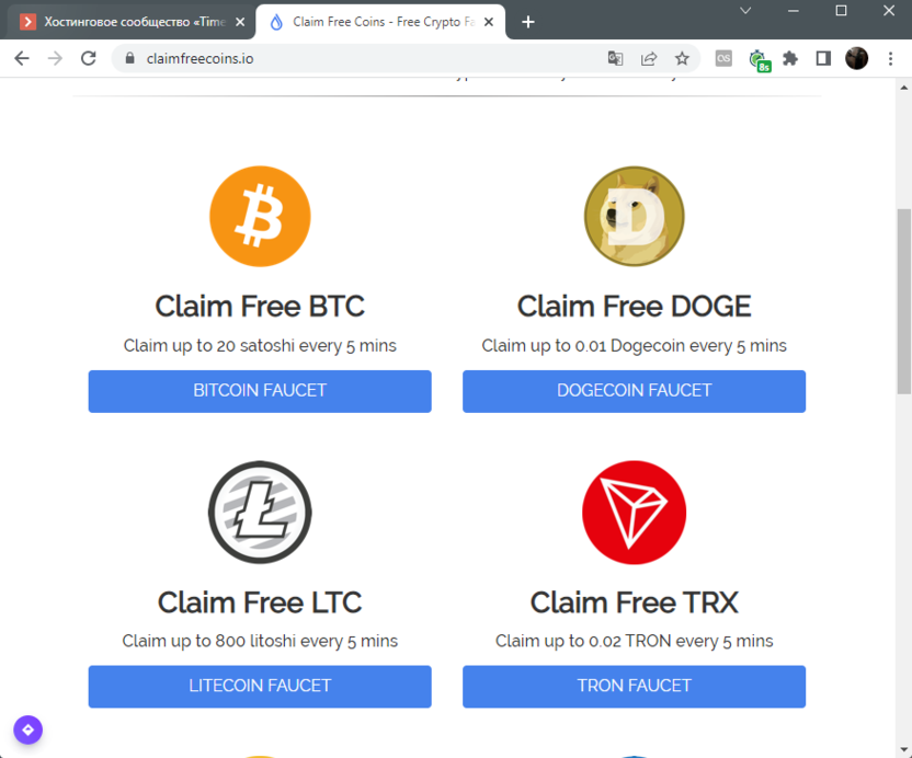 | ClaimFreeCoins | 5 | 20–30 | 40000 сатоши | FaucetPay |