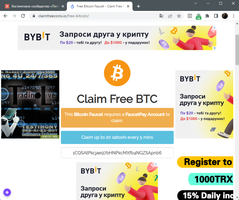 | BitcoinfaucetFun | 15 | 10–21 | 1000 сатоши | FaucetPay |