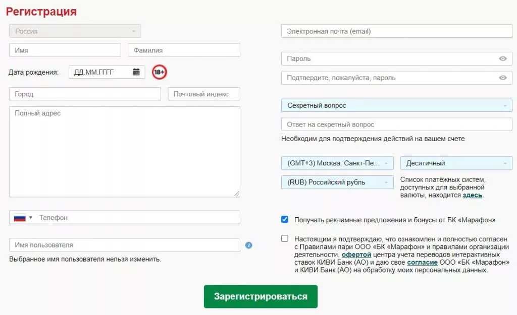 странице акции Марафон бет, если беттор заходит на нее, авторизовавшись в своем