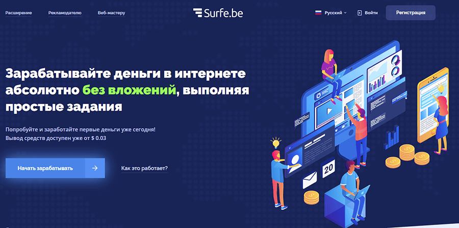 Surfe.be — сайт для заработка, который позволяет получать деньги на автомате — через специальное расширение. Нужно всего лишь его установить, активировать, дальше вам будет показываться реклама и капать деньги.