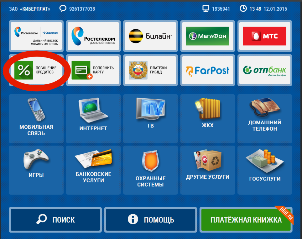 Процесс займёт минимум времени, в меню терминала найдите «Банковские операции», затем выберите «Погашение кредита». Далее переходим в интересующий вас банк, вводим номер соглашения и нужную сумму. Как вы видите, порядок оплаты кредита действительно идентичен системе Элекснет.