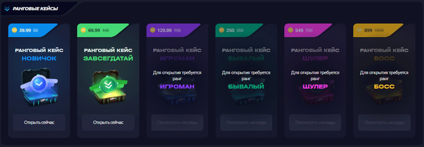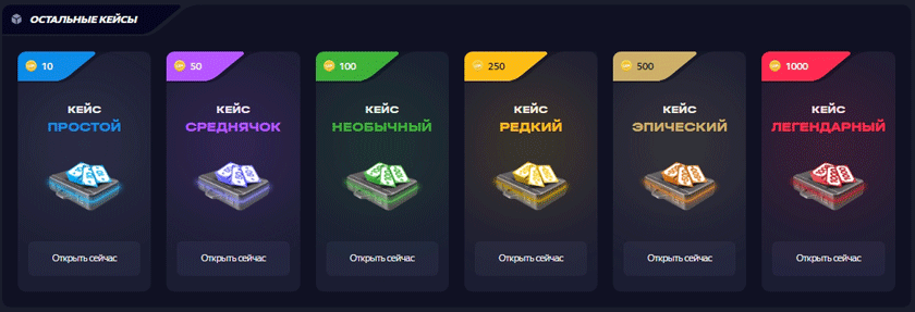 - Вам необходимо выбрать кейс, которые отличаются по стоимости. Здесь все достаточно логично – более дорогие коробки содержат более ценные награды.