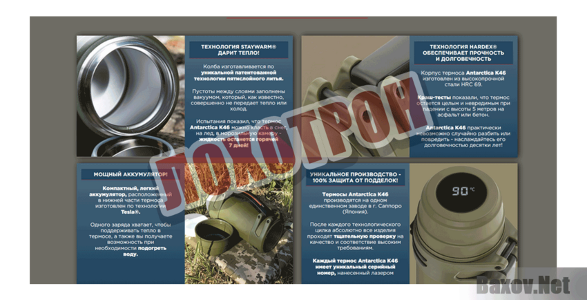 Охотники, рыболовы, походники и все кому приходится пользоваться термосом, вам крупно повезло. Мошенники разработали для вас инновационный термос, ну просто с космическими нанотехнологиями. Встречайте: «Арктический термос ANTARCTICA K46» с автономным электроподогревом! АКЦИЯ Х2! 9200 руб 1990 руб.