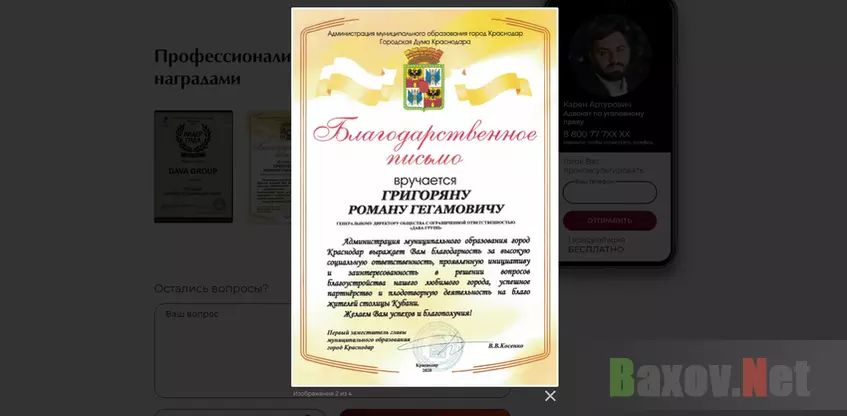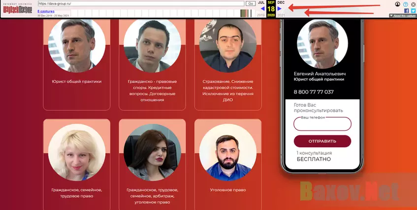 DavaGroup существует больше года. Компания успел накопить много негативных отзывов в интернете и при этом эволюционировать. Пользователи сети ранее ругались на сомнительные документы. Негодяи их сменили на грамоты и благодарности. Наблюдательные граждане заметили, что лица юристов не соответствуют. Жулики прилепили новые. Проследить тенденцию изменений можно в ВебАрхиве. К примеру, осенью 2020 года мелькали снимки других адвокатов.