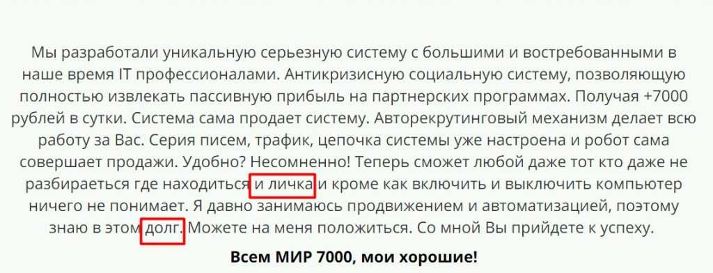 Вот характерные признаки лже-сервиса МИР 7000: