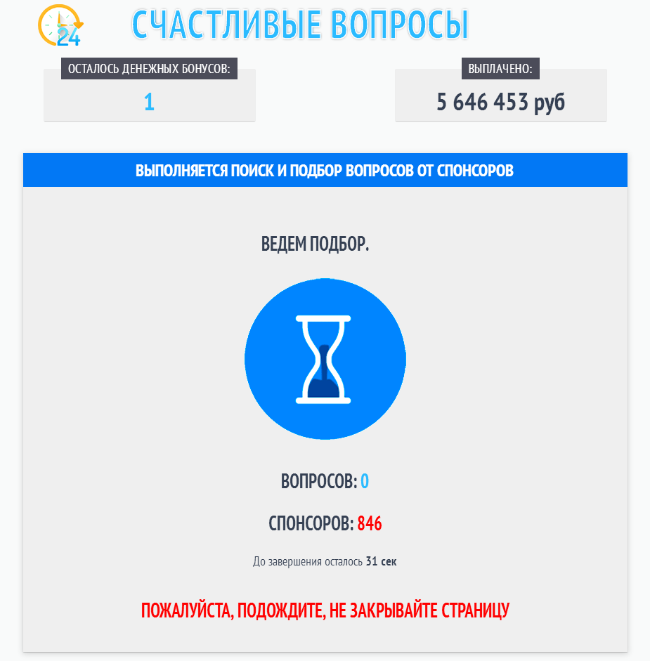 Начинается какая-то нелепая карусель вроде как по подбору счастливых вопросов от спонсоров. Как по мне, то уже очень сильно попахивает разводом. И вот, через несколько секунд я счастлив как никогда, потому что я смогу сейчас заработать за какие-то 6 вопросов целых 116707 рублей.