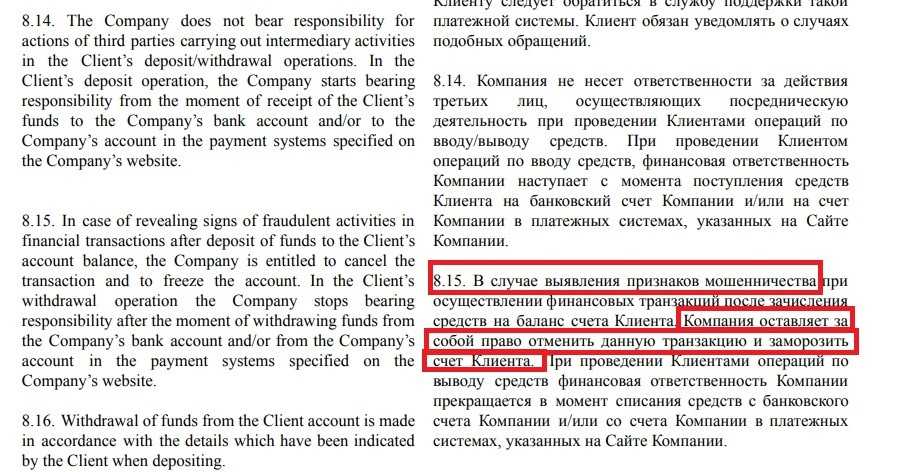 Также клиента могут заподозрить в мошенничестве, вменяя ему несуразные обвинения. А подозрения в нарушении соглашения — прямой путь к отказу в выводе.
