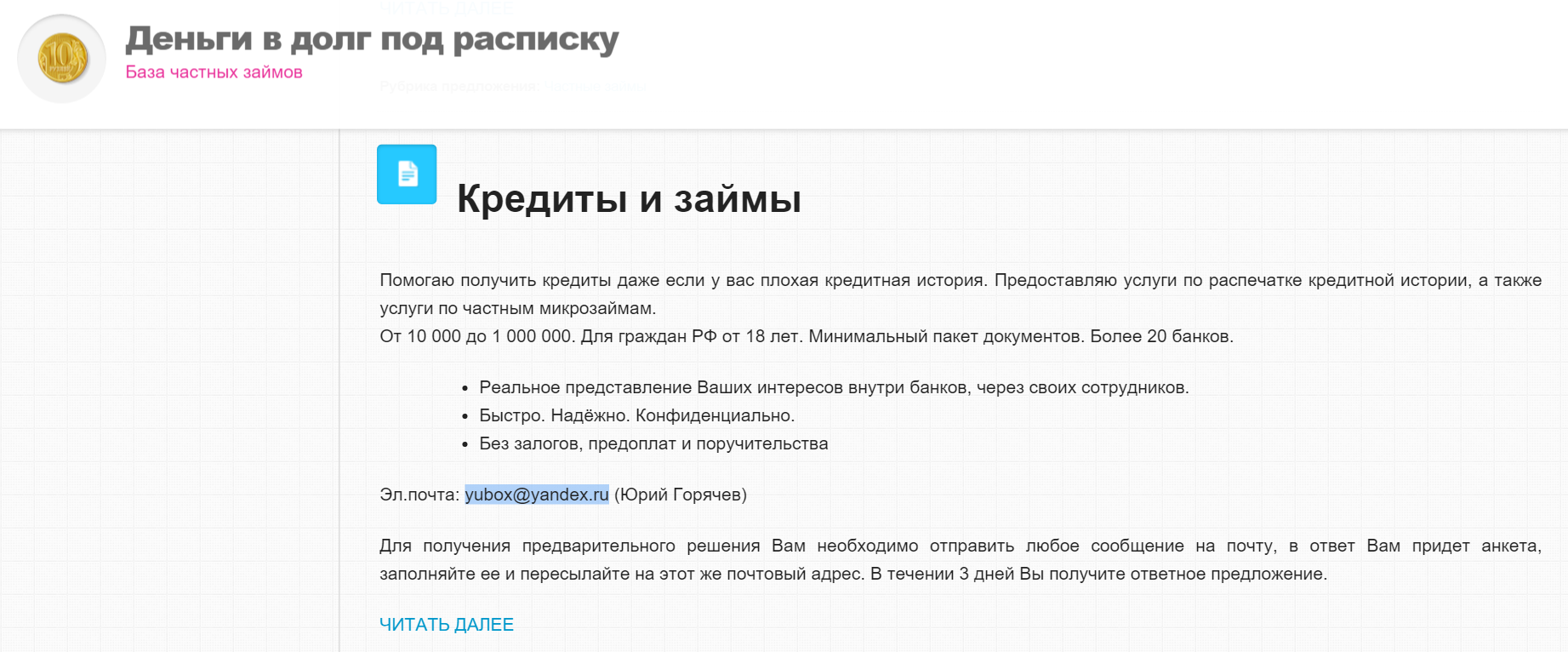 А в базе — куча МФО и куча кредитных мошенников, которые без труда пробиваются через поиск гугла.
