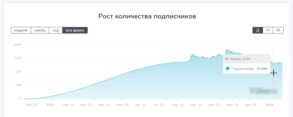 На статистическом графике можно заметить странность динамики подписчиков канала. Она то резко растет, то резко падает. Это странный показатель, который может быть связан с несколькими факторами: