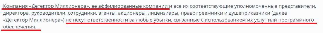 Хотя по сути вы думаете, что инвестируете деньги в чудо-программу «Детектор Миллионера» как написано на сайте.