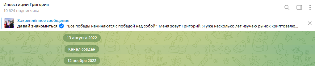 У проекта нет никаких сайтов, публичных социальных сетей. Можно отталкиваться только от Телеграм-канала Григория. В нем есть пост, в котором автор рассказывает о себе. Приветствие Григорий начинает с прозаичной фразы: «Все победы начинаются с победой над собой». Автор заявляет, что несколько лет изучает рынок криптовалют и инвестиции. Только непонятно, «несколько» — это сколько. Он агитирует людей к тому, что каждый должен развивать себе инвесторские и предпринимательские качества. Григорий строго против вложений с использованием кредитных средств. Заявляет, что все идеи основаны на личном опыте и не является рекомендациями.