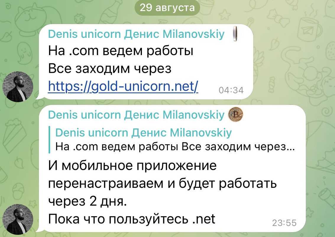 Вот только потом, некоторое время спустя вы с другом поймете, что Наталья Плотникова не совсем обычный «филантроп». Она – приятельница Милановскгого и один из ключевых партнеров, которая привлекла сотни тысяч долларов в этот скам от доверчивых инвесторов. Но когда вы это поймете, будет слишком поздно. Да, возможно в начале пути вы и получите какие-то выплаты, но только для того, чтобы вложить еще больше и привести новых людей. Именно с этим и столкнулись сотни вкладчиков Единорога, которые в определенный момент начали что-то подозревать. А скам-контора начала выдавать классические скам-трюки. Сначала не работает или глючит сайт.