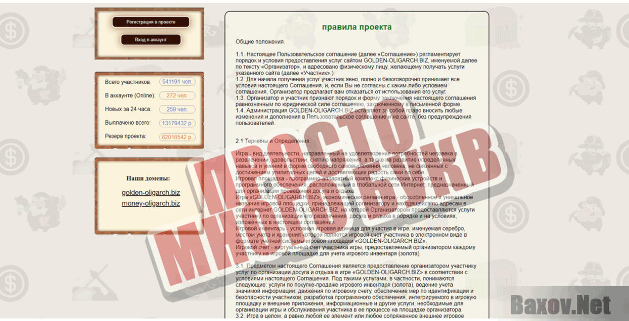 Golden Oligarch, представленный как экономическая онлайн игра с возможностью инвестирования, на самом деле скрывает в себе типичную финансовую пирамиду. Сайт s2 golen oligarch cc призывает пользователей играть и зарабатывать, однако его основная цель — привлечение средств для обогащения немногих, за счет многих.