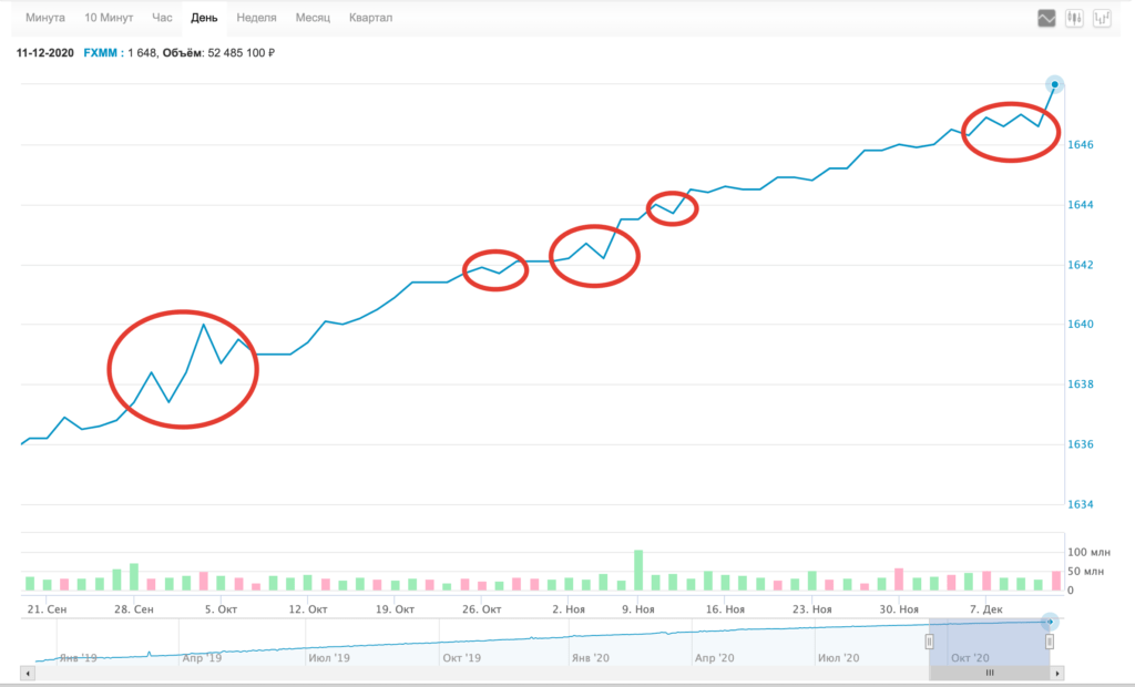 Дневные котировки FXMM на Мосбирже в сентябре-декабре 2020 года
