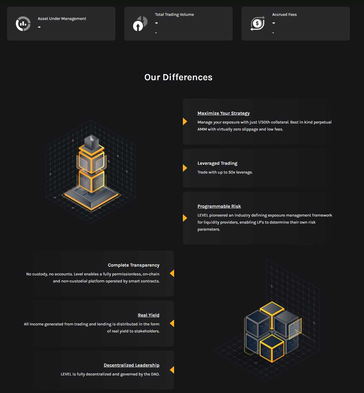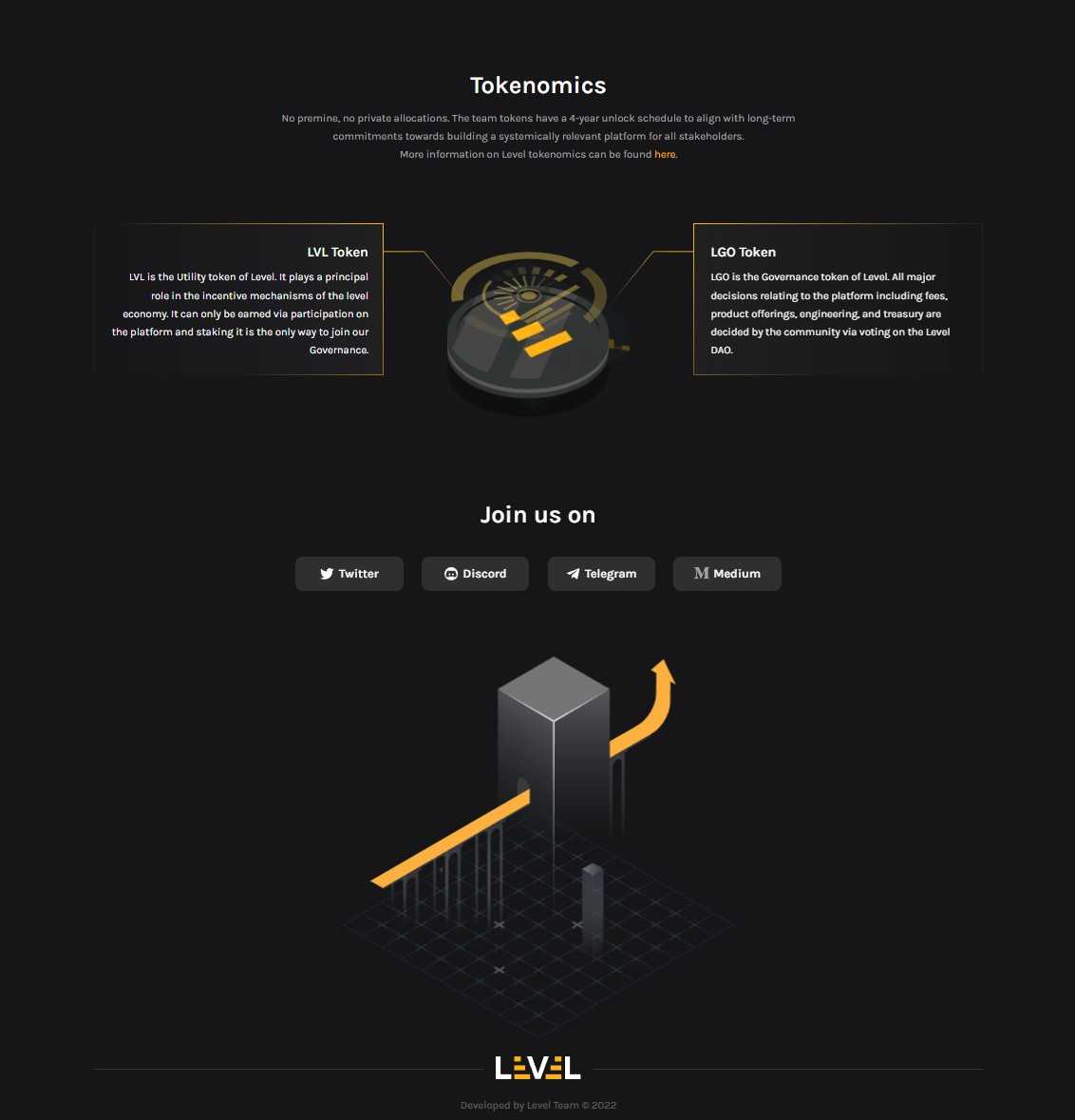 Level Finance был запущен в конце 2022 года, и, несмотря на свою недавнюю историю, они уже утверждают, что имеют объемы торгов в размере 20 миллионов долларов. Однако команда разработчиков остается анонимной, что вызывает определенные сомнения в отношении надежности проекта. Сообщество Level Finance ведет общение через платформу телеграмм и работает в двух сетях: BNB Chain и Arbitrum.