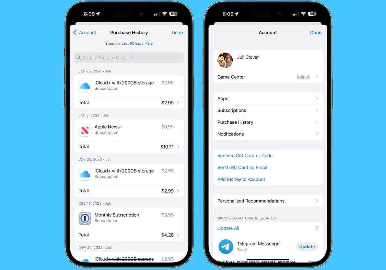 Теперь все покупки отображаются прямо в настройках App Store