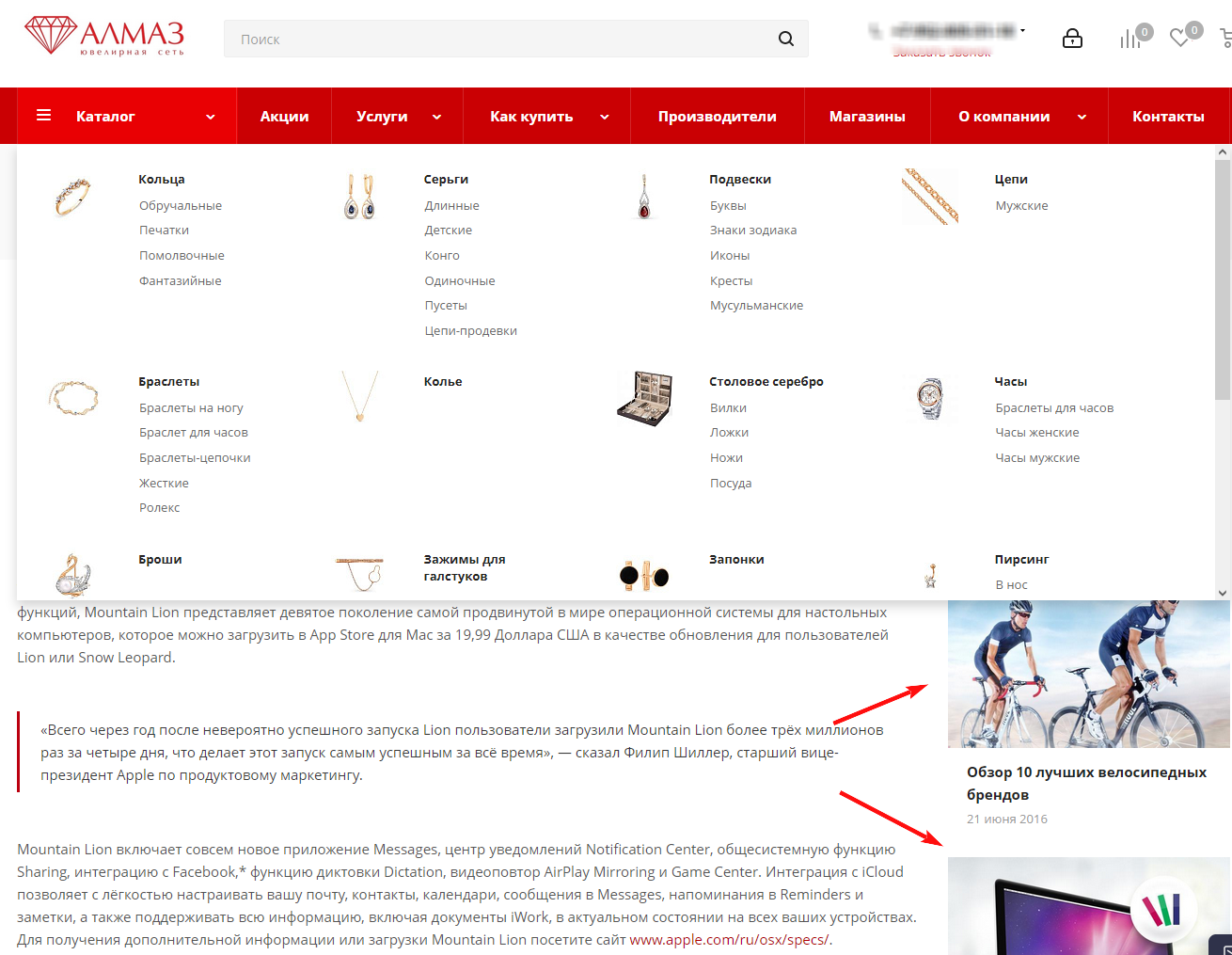 - Разделы блог, акции, новости, статьи и т.п. – аналогично, данные страницы были заложены в шаблоне, но контента для них нет или нет времени для его переноса. Если такие страницы не отключены, то они могут быть наполнены тестовым (причем, не всегда тематическим) контентом шаблона или останутся пустыми.