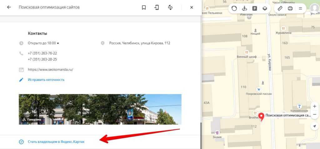 Существует большая вероятность того, что ваша компания уже присутствует на Картах и в Справочнике. Это вы можете проверить с помощью поиска по названию. Если вы нашли свою компанию на Картах, то для управления ее данными вам необходимо будет подтвердить права с помощью запроса кода подтверждения по указанным контактным данным. Для этого просто найдите кнопку «Стать владельцем на Яндекс.Картах» и далее следуйте простым инструкциям.