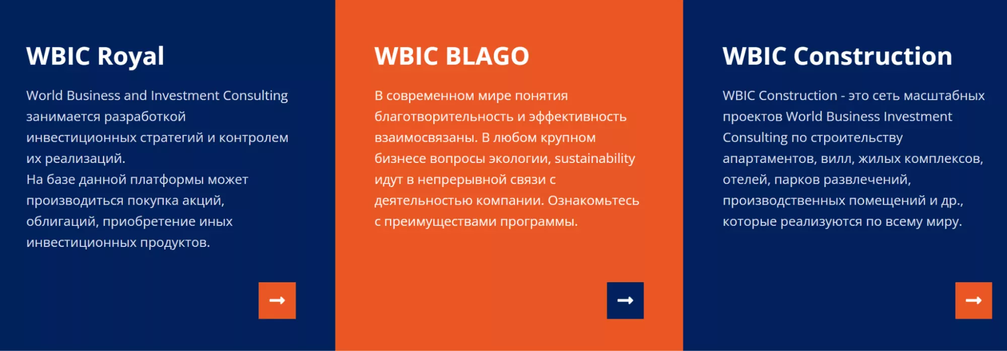 - Construction. В эту категорию входит большой проект, ориентированный на строительство жилья разного вида и в разных странах мира. Среди заявленных плюсов выделяется защита со стороны законодательства, уникальные предложения для клиентов Wbic Businness Consulting, большой выбор, доступность и привлекательные цены.