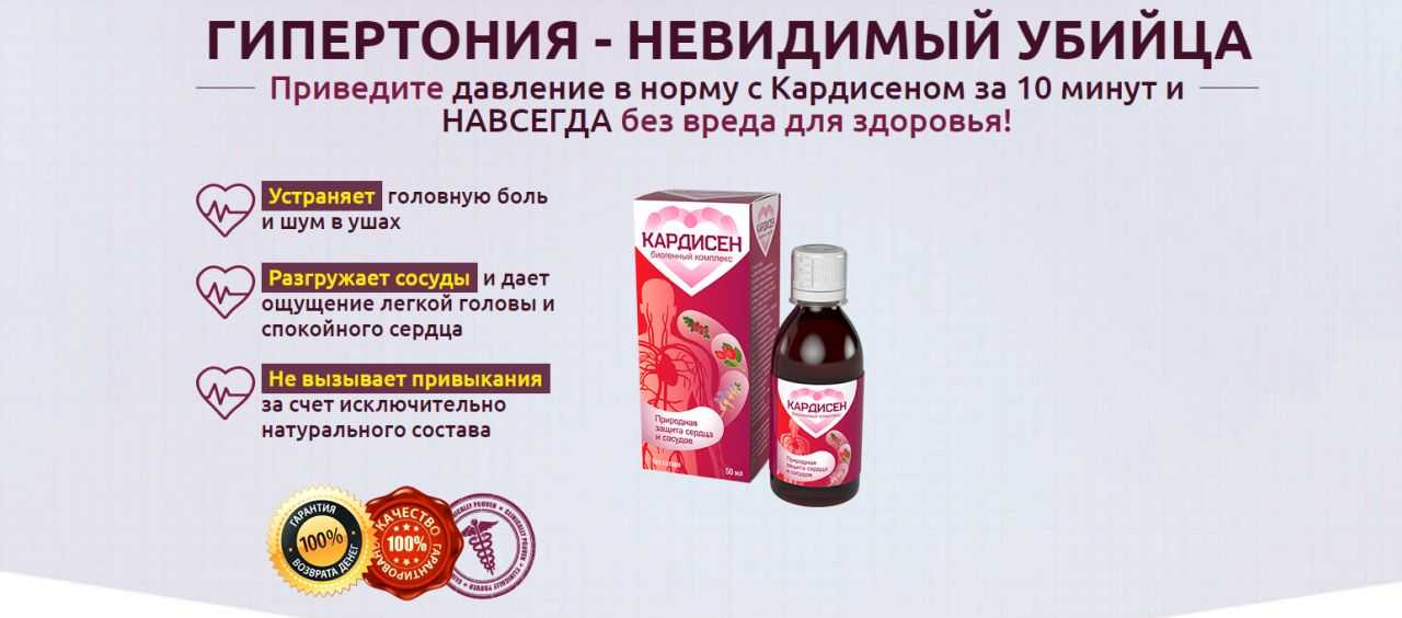 Этот инновационный препарат уникален тем, что не имеет аналогов на рынке. Он был создан для лечения гипертонии и артериального давления. Кардисен обладает множеством преимуществ:
