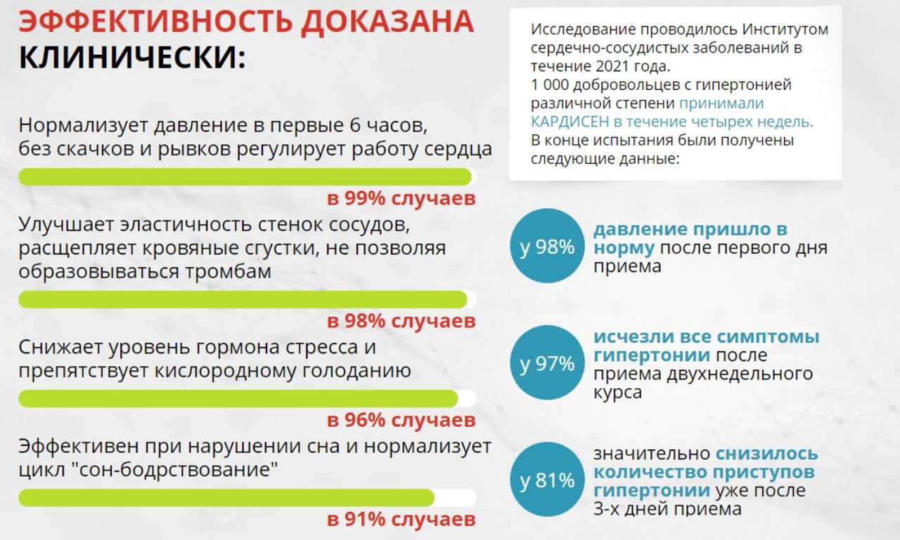 Убедиться в эффективности и безопасности Кардисена можно, изучив результаты клинических экспериментов с участием добровольцев, а также мнение специалистов.