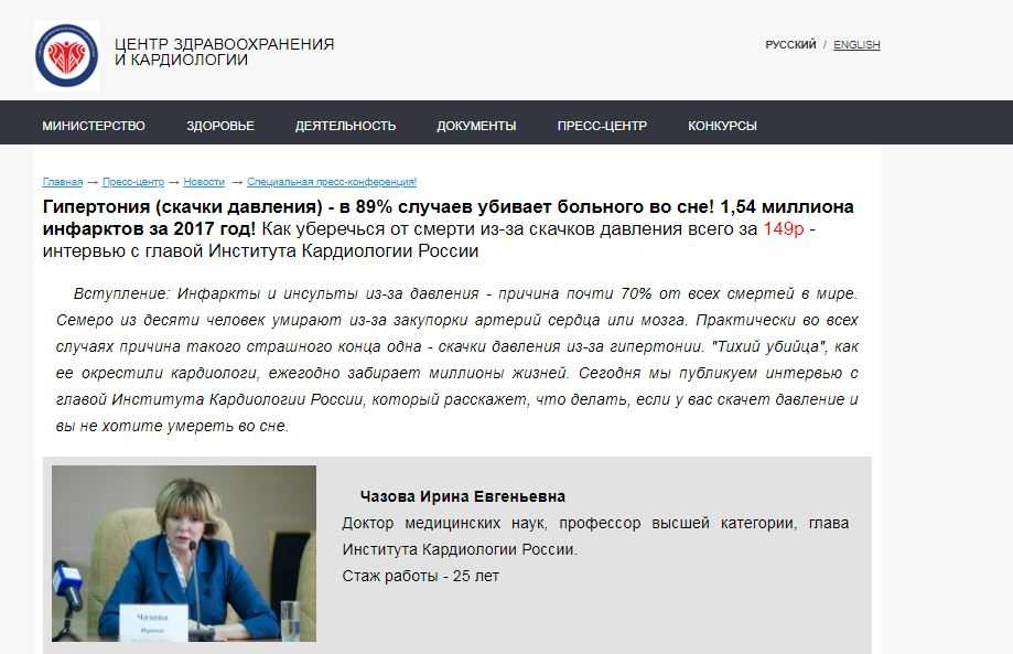 Кардитонус. Интервью с главой Института Кардиологии России обман